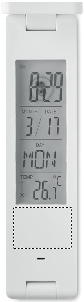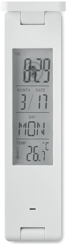 Faltbare Tischleuchte mit 18 LEDs. Die Uhr zeigt Zeit und Temperatur an. Alarmfunktion. ABS. Inkl. 1 CR2032 Batterie.