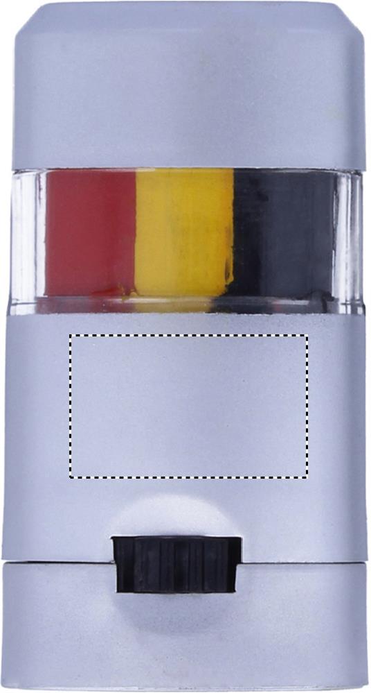 So gelingt die perfekte Deutschlandfahne im Nu! Fanschminke mit praktischer Kunststoffhalterung zur einfachen Anwendung: Ansetzen, Aufzeichnen – Fertig! Hautverträglich und rückstandslos abwaschbar.Material: KunststoffMaße: 27 x 11 x 2 x Ø: 0,00 mmGewicht: 12 gDruckmöglichkeitenPosition 1: Druck auf Seite mit dem gelben EinlegerDruckart: TampondruckDruckgruppe: TAMCMaximale Farben: 5Breite: 20 mmHöhe: 20 mmPosition 3: Auf dem DeckelDruckart: TampondruckDruckgruppe: TAMCMaximale Farben: 5Breite: 15 mmHöhe: 10 mmPosition 4: Mittig - Aufklebergrundfarbe ist weißDruckart: PlotterDruckgruppe: PAMaximale Farben: 4Breite: 23 mmHöhe: 20 mmFarbe: Deutschland-Farben