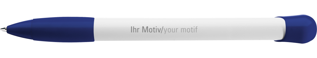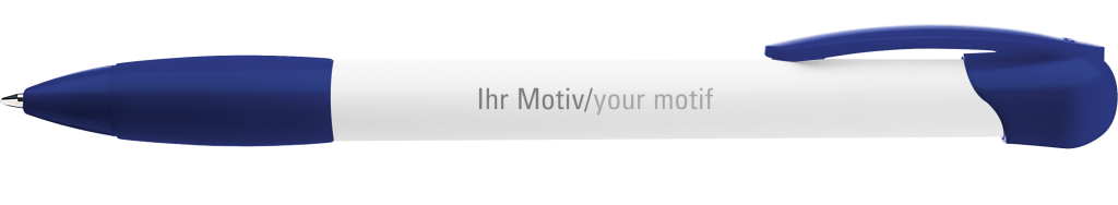 Weißer Kunststoff-Kugelschreiber mit farbigem Clip, blauschreibend.Maße: ø10×138 mmSchreibgerät-Typ: KugelschreiberSchreibgerät-Mechanik: DruckmechanikSchreibfarbe: BlauMinentyp: Normale MineLinienstärke: 1 mmMaterial: Kunststoff (ABS)Veredelungsposition 1: Korpus - rechts vom ClipTechnologie: UV-LED-Druck - EinzelnamenDurchmesser: 0Druckcode: NUVATechnologie: TampondruckMaximale Farben: 4Durchmesser: 0Druckcode: P0Technologie: TampondruckMaximale Farben: 1Durchmesser: 0Druckcode: P1Technologie: UV LED DruckDurchmesser: 0Druckcode: UVAVeredelungsposition 2: Korpus - links vom ClipTechnologie: UV-LED-Druck - EinzelnamenDurchmesser: 0Druckcode: NUVATechnologie: TampondruckMaximale Farben: 4Durchmesser: 0Druckcode: P0Technologie: TampondruckMaximale Farben: 1Durchmesser: 0Druckcode: P1Technologie: UV LED DruckDurchmesser: 0Druckcode: UVAVeredelungsposition 3: KlipTechnologie: TampondruckMaximale Farben: 4Durchmesser: 0Druckcode: P0Veredelungsposition 4: Korpus - in Verlängerung vom ClipTechnologie: TampondruckMaximale Farben: 4Durchmesser: 0Druckcode: P0