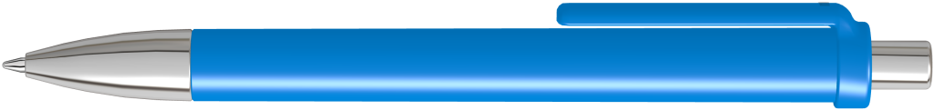 Druckkugelschreiber mit gedeckt glänzendem Schaft und Clip, Metallspitze und Metalldrücker glanzverchromt.Druckbereich: In Clipverlängerung 40mm x 20mm Siebdruck (S), seitlich vom Clip 80mm x 13mm Siebdruck (S), gegenüber vom Clip 80mm x 13mm Siebdruck (S), auf dem Clip 35mm x 9mm Tampondruck (T)