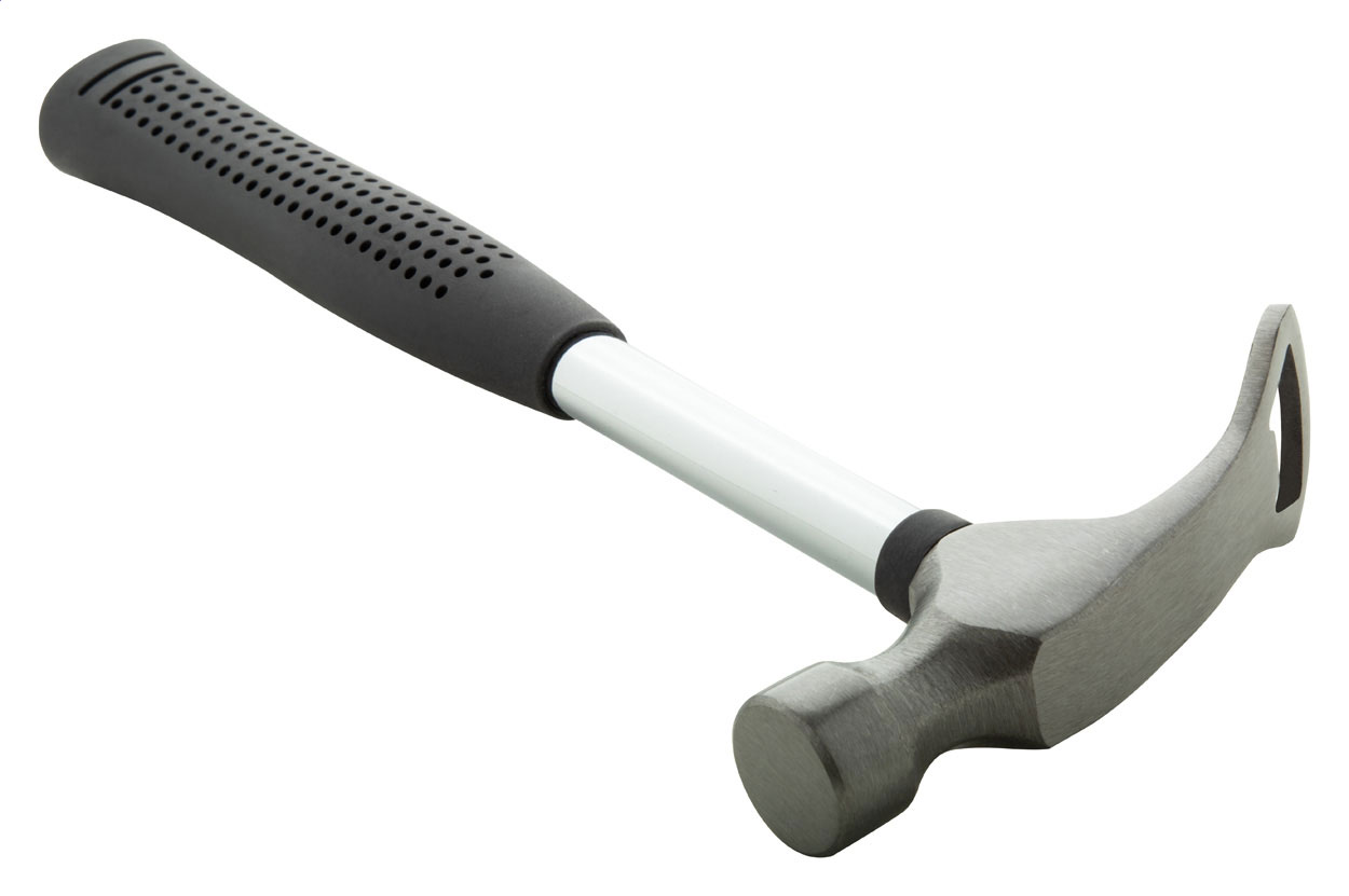 Feierabendhammer mit Flaschenöffner und Gummigriff.