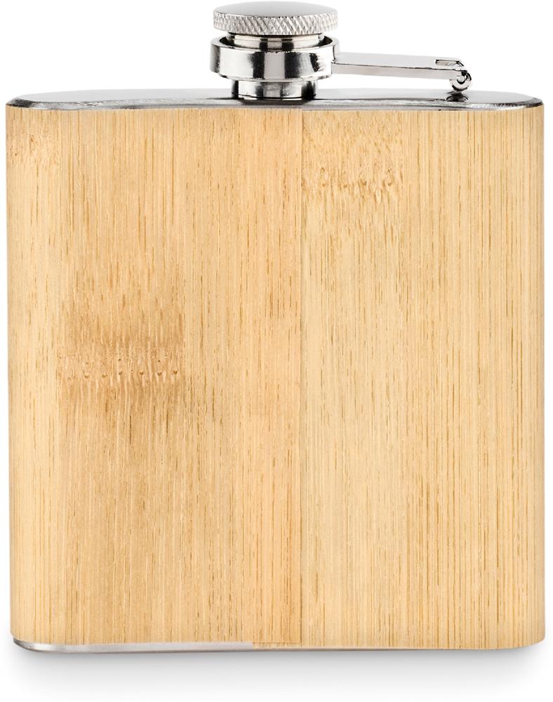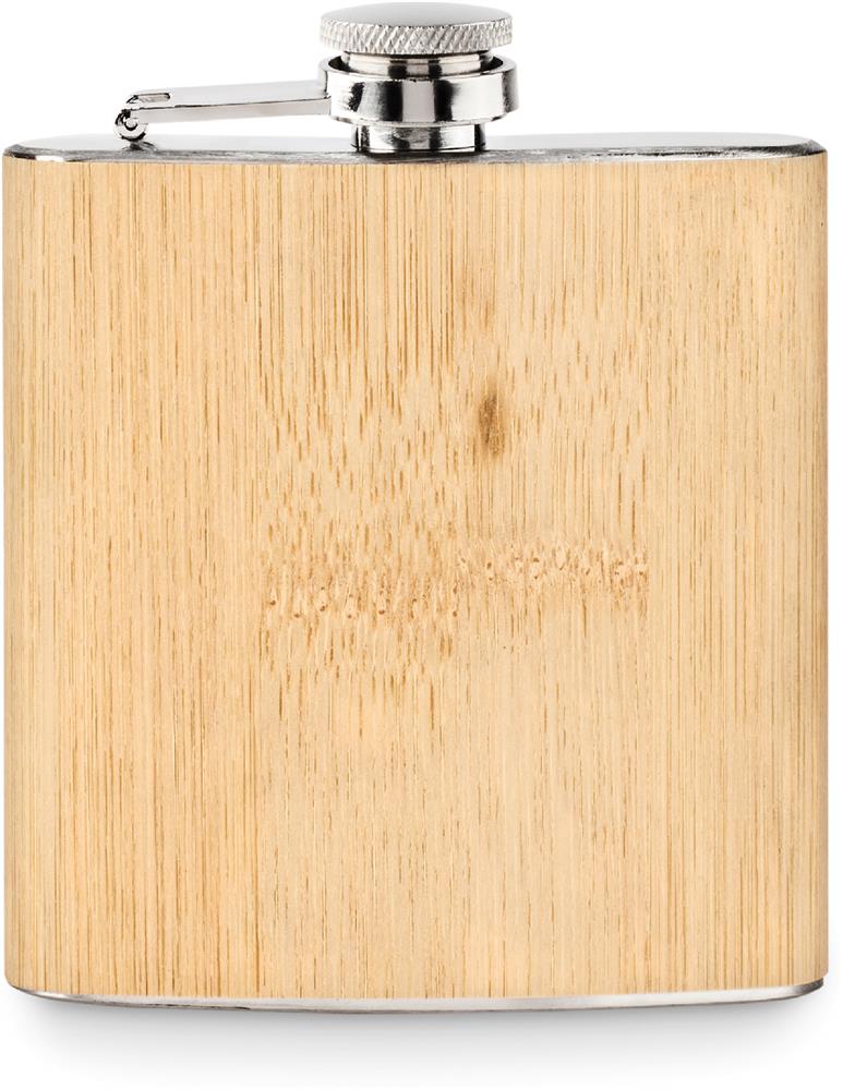 Schlanker Flachmann mit Bambus-Finish. Füllmenge: 170 ml.