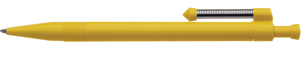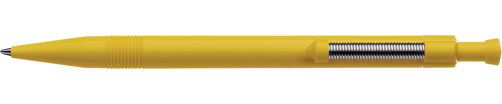 Druckkugelschreiber mit gedecktem Gehäuse und flexiblem und vernickeltem Metallfederclip.