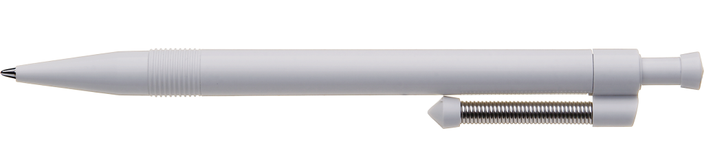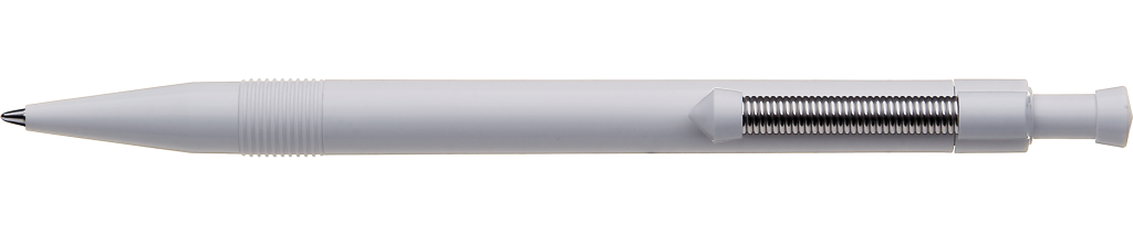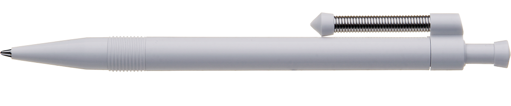 Druckkugelschreiber mit gedecktem Gehäuse und flexiblem und vernickeltem Metallfederclip.