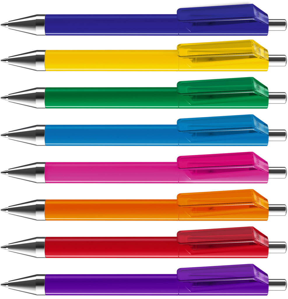 Farbiger Kugelschreiber aus Kunststoff, schwarzschreibend.Maße: ø10×138 mmSchreibgerät-Typ: KugelschreiberSchreibgerät-Mechanik: DruckmechanikSchreibfarbe: SchwarzMinentyp: Normale MineLinienstärke: 1 mmMaterial: KunststoffVeredelungsposition 1: Korpus - rechts vom ClipTechnologie: TampondruckMaximale Farben: 4Durchmesser: 0Druckcode: P0Technologie: TampondruckMaximale Farben: 1Durchmesser: 0Druckcode: P1Technologie: UV LED DruckDurchmesser: 0Druckcode: UVAVeredelungsposition 2: Korpus - links vom ClipTechnologie: TampondruckMaximale Farben: 4Durchmesser: 0Druckcode: P0Technologie: TampondruckMaximale Farben: 1Durchmesser: 0Druckcode: P1Technologie: UV LED DruckDurchmesser: 0Druckcode: UVAVeredelungsposition 3: KlipTechnologie: TampondruckMaximale Farben: 4Durchmesser: 0Druckcode: P0Veredelungsposition 4: Korpus - in Verlängerung vom ClipTechnologie: TampondruckMaximale Farben: 4Durchmesser: 0Druckcode: P0