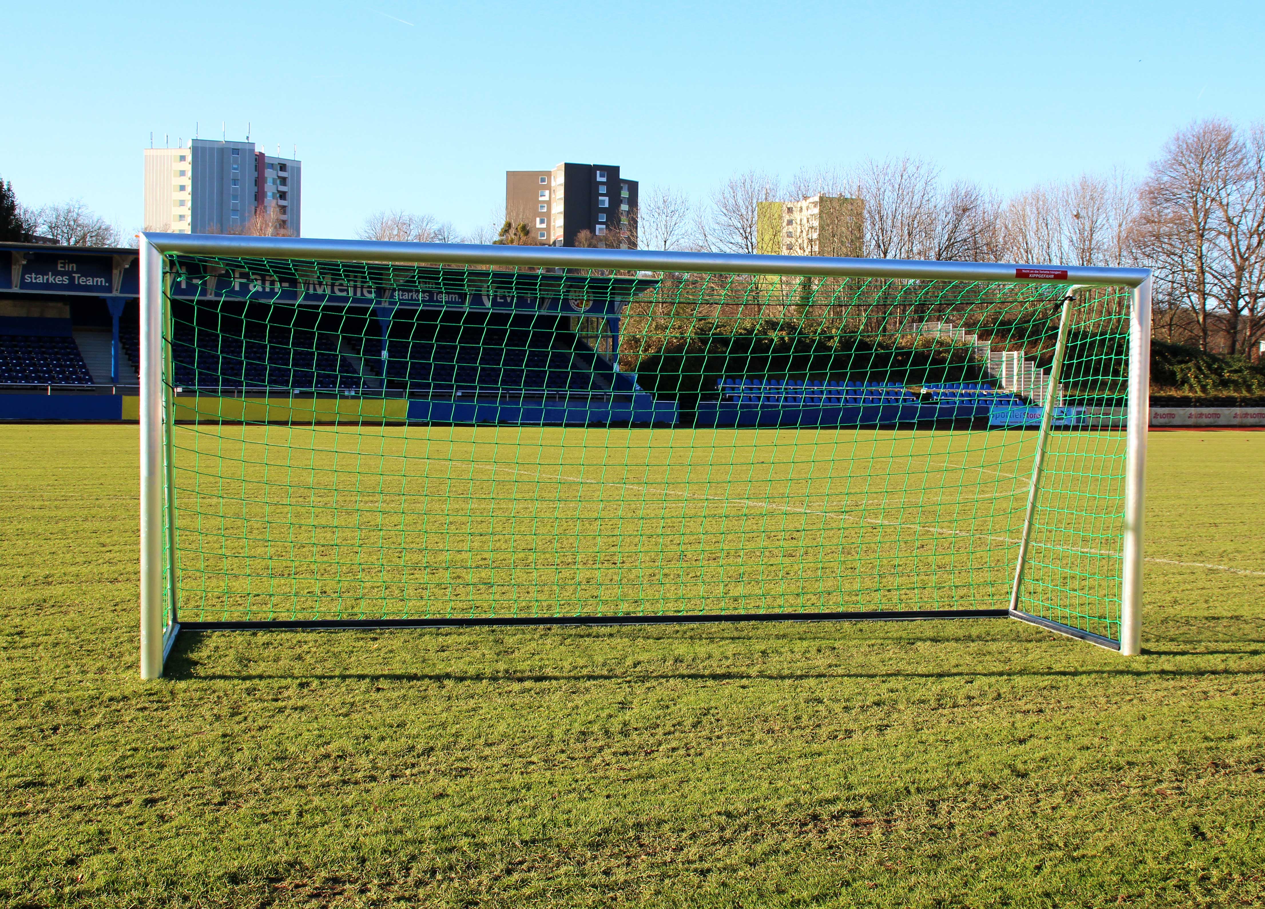 vollverschweißt 7,32 x 2,44 m , 2m tief, DIN-EN 748, GS-geprüft, aus einem noch dickeren, noch stabileren Ovalprofil 120 x 100 mm, nach DIN, DFB- und FIFA-Norm.