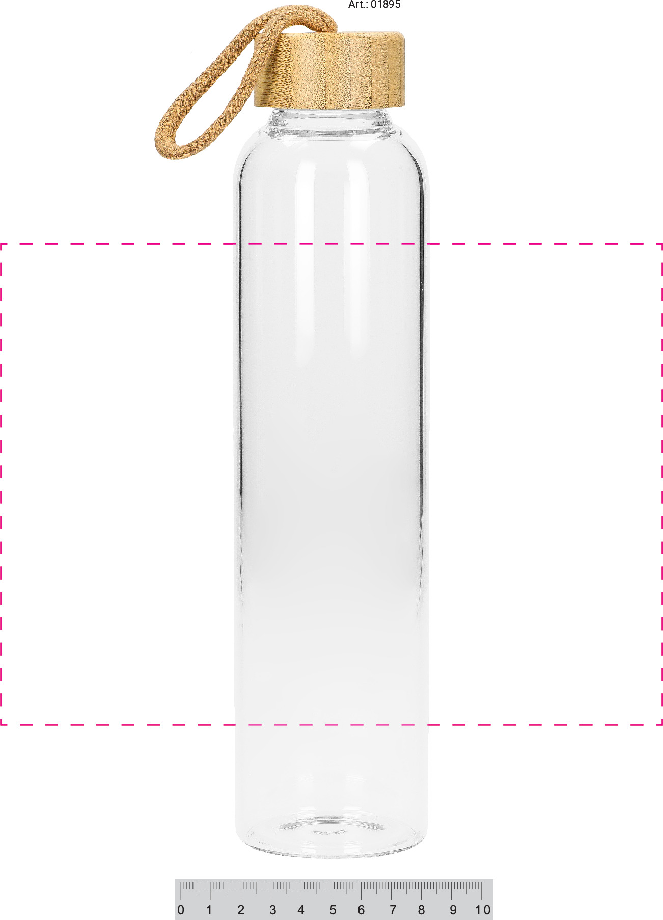 Die ideale Glasflasche für daheim und unterwegs. Der Flaschenkörper besteht aus Sodalime-Glas. Der Silikonring im Inneren des metallenen Schraubdeckels macht die Flasche auslaufsicher. Füllmenge: 0,6 Liter.Material: GlasMaße: 0 x 0 x 235 x Ø: 72,00 mmGewicht: 366 gHinweis: Bitte beachten Sie, dass aufgrund der Materialeigenschaft kleine Blasen und Einschlüsse aus produktionstechnischen Gründen nicht ausgeschlossen werden können. DruckmöglichkeitenPosition 1: Mittig rundumDruckart: SiebdruckDruckgruppe: DCMaximale Farben: 1Breite: 170 mmHöhe: 90 mmPosition 2: Auf FlascheDruckart: TampondruckDruckgruppe: TAMCMaximale Farben: 5Durchmesser: 25 mmPosition 3: Mittig Hochkant auf FlascheDruckart: TampondruckDruckgruppe: TAMCMaximale Farben: 5Breite: 15 mmHöhe: 70 mmPosition 4: Auf DeckelDruckart: LasergravurDruckgruppe: L1Maximale Farben: 1Durchmesser: 20 mmPosition 5: Auf FlascheDruckart: LasergravurDruckgruppe: L5Maximale Farben: 1Breite: 40 mmHöhe: 80 mm
