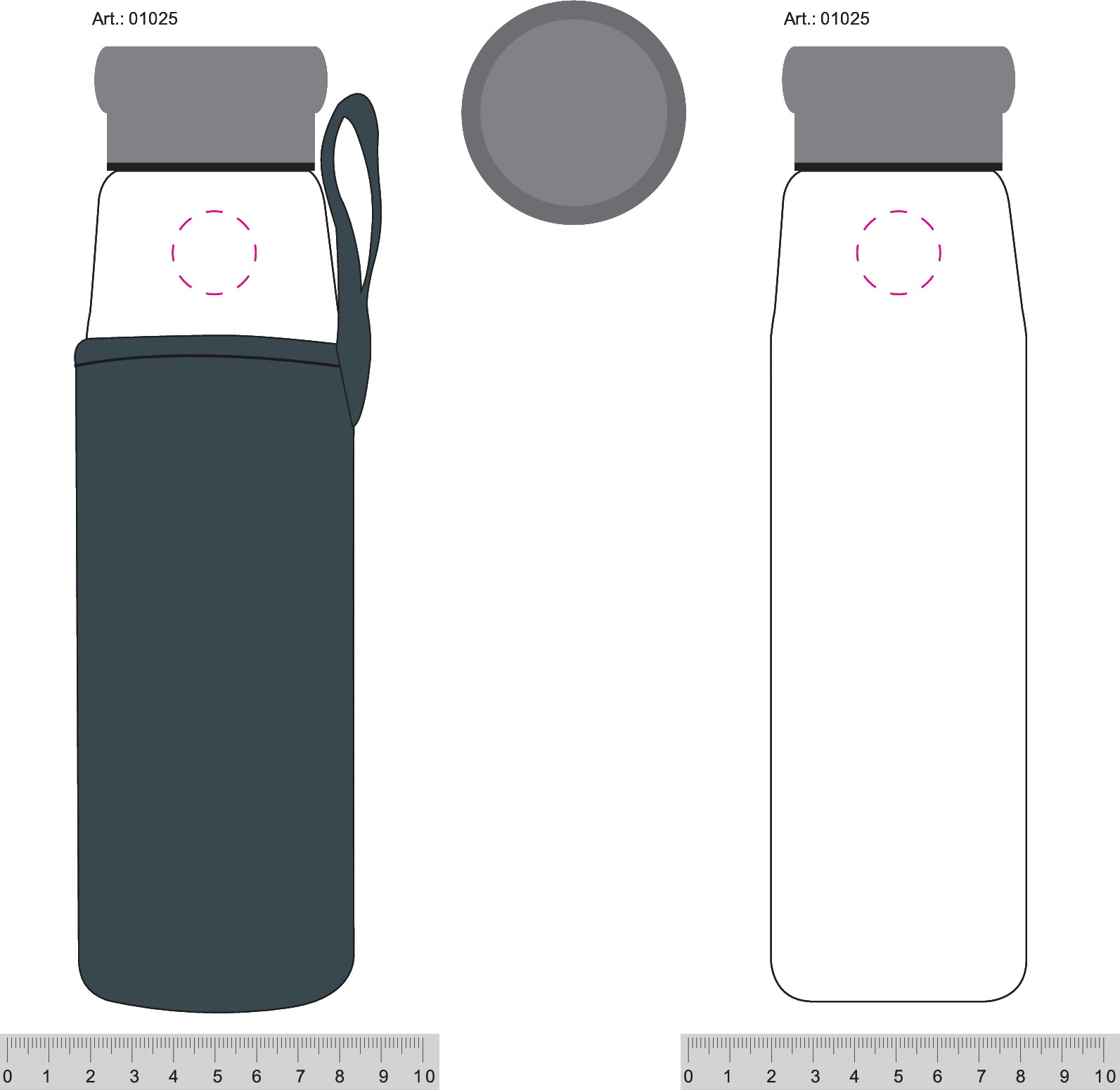 Trinkflasche aus Glas mit Neopren-Schutzhülle. Füllmenge: 500 ml. Nicht geeignet für kohlensäurehaltige Getränke. Auslaufsicher.Material: Kalk-Natron-GlasMaße: Ø6x22cmGewicht: 0.277 kgVeredelung: Bestickung, Bedruckung, BeflockungHandling/Farbcodes: B/03, 10, 12, 37, 48, 05, 07, 13, 11, 21, 99Druckposition: ROUNDSCREENDruckmaße: 150 x 90 mmDrucktechniken: DL, RS6Druckposition: POUCH T1Druckmaße: 170 x 115 mmDrucktechniken: T1, TRDruckposition: POUCHDruckmaße: 55 x 100 mmDrucktechniken: TR, S2, T1, TD1Druckposition: LID TOPDruckmaße: 30 x 30 mmDrucktechniken: L2, P4Druckposition: FRONTDruckmaße: 30 x 80 mmDrucktechniken: DL, L2, P6