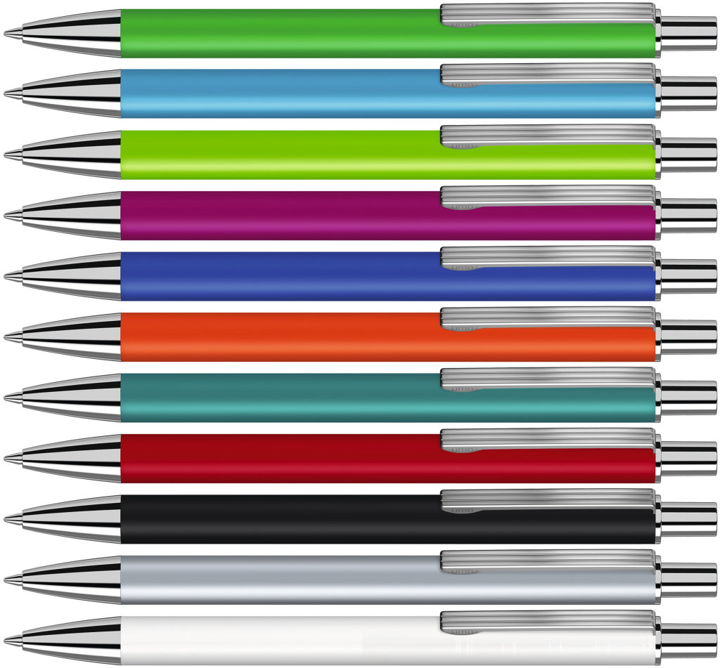 Farbiger Kugelschreiber aus Kunststoff, schwarzschreibend.Maße: ø10×138 mmSchreibgerät-Typ: KugelschreiberSchreibgerät-Mechanik: DruckmechanikSchreibfarbe: SchwarzMinentyp: Normale MineLinienstärke: 1 mmMaterial: KunststoffVeredelungsposition 1: Korpus - rechts vom ClipTechnologie: TampondruckMaximale Farben: 4Durchmesser: 0Druckcode: P0Technologie: TampondruckMaximale Farben: 1Durchmesser: 0Druckcode: P1Technologie: UV LED DruckDurchmesser: 0Druckcode: UVAVeredelungsposition 2: Korpus - links vom ClipTechnologie: TampondruckMaximale Farben: 4Durchmesser: 0Druckcode: P0Technologie: TampondruckMaximale Farben: 1Durchmesser: 0Druckcode: P1Technologie: UV LED DruckDurchmesser: 0Druckcode: UVAVeredelungsposition 3: KlipTechnologie: TampondruckMaximale Farben: 4Durchmesser: 0Druckcode: P0Veredelungsposition 4: Korpus - in Verlängerung vom ClipTechnologie: TampondruckMaximale Farben: 4Durchmesser: 0Druckcode: P0