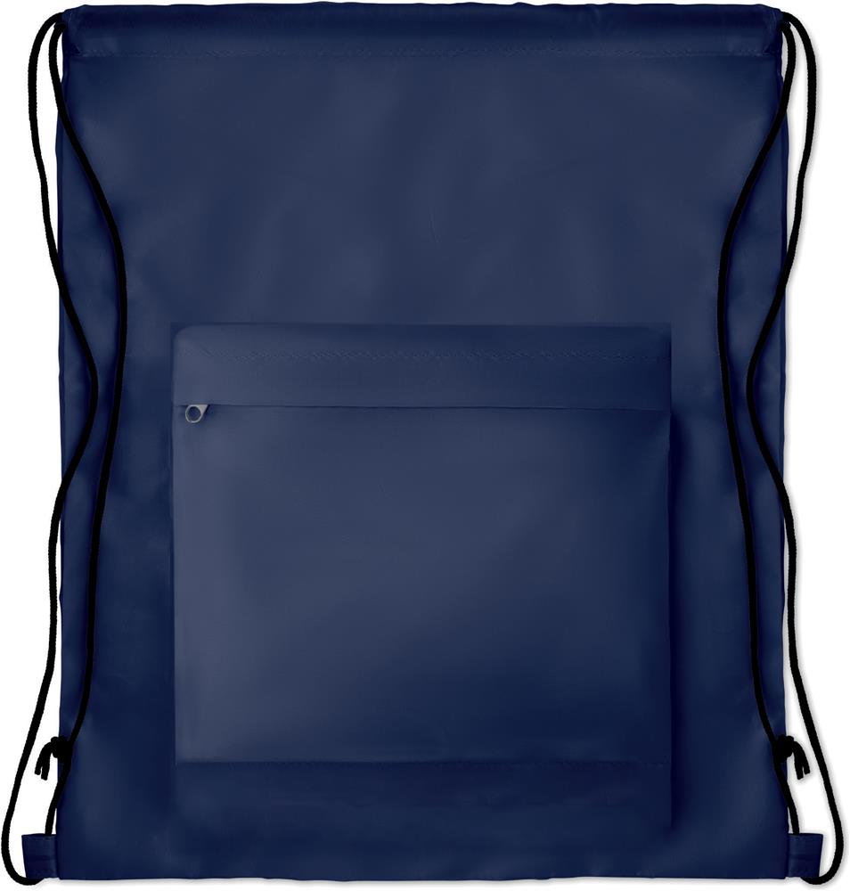 Großer Beutel / Rucksack mit Kordelzug und Reißverschlussfronttasche. 210D Polyester.