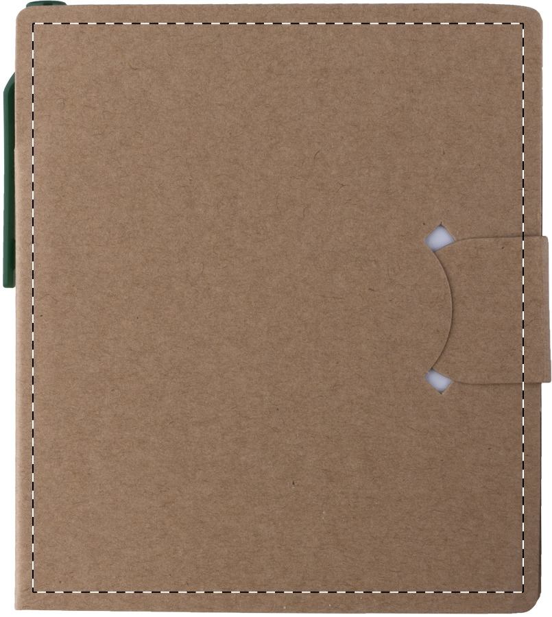 Haftnotiz-Set mit Umschlag aus Recyclingpapier, verschiedenen Haftnotizgrößen und Kugelschreiber aus Recyclingpapier (blauschreibend).
