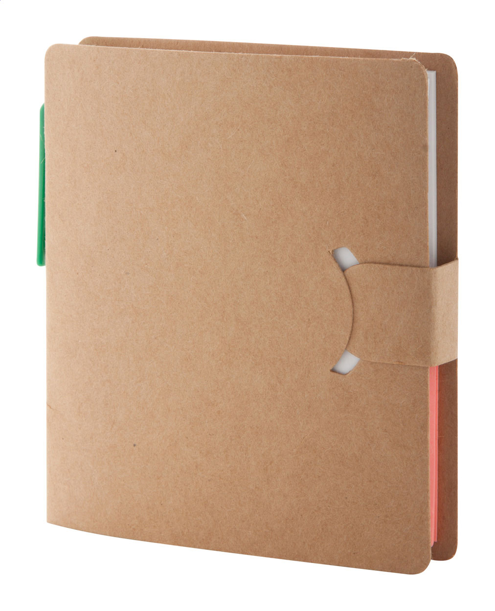 Haftnotiz-Set mit Umschlag aus Recyclingpapier mit verschiedenen Haftnotizgrößen: 5x25 klein und 3x25 groß.Maße: 83×76×22 mmMaterial: Recycling PapierVeredelungsposition 1: VorderseiteTechnologie: TampondruckMaximale Farben: 4Durchmesser: 0Druckcode: P1Veredelungsposition 2: RückseiteTechnologie: TampondruckMaximale Farben: 4Durchmesser: 0Druckcode: P1Farbe: natur