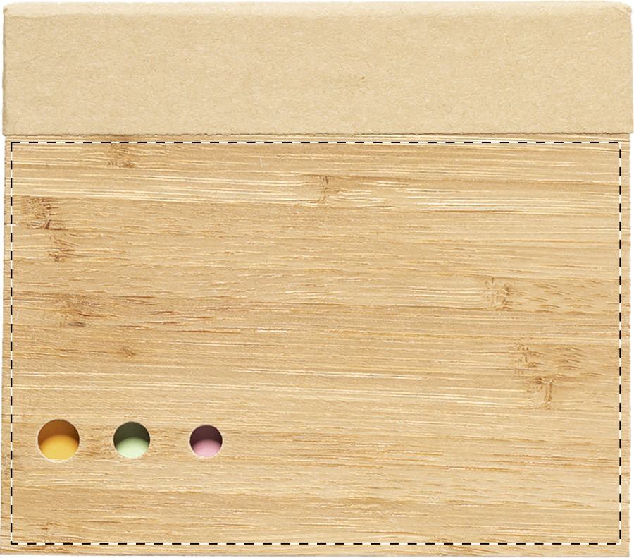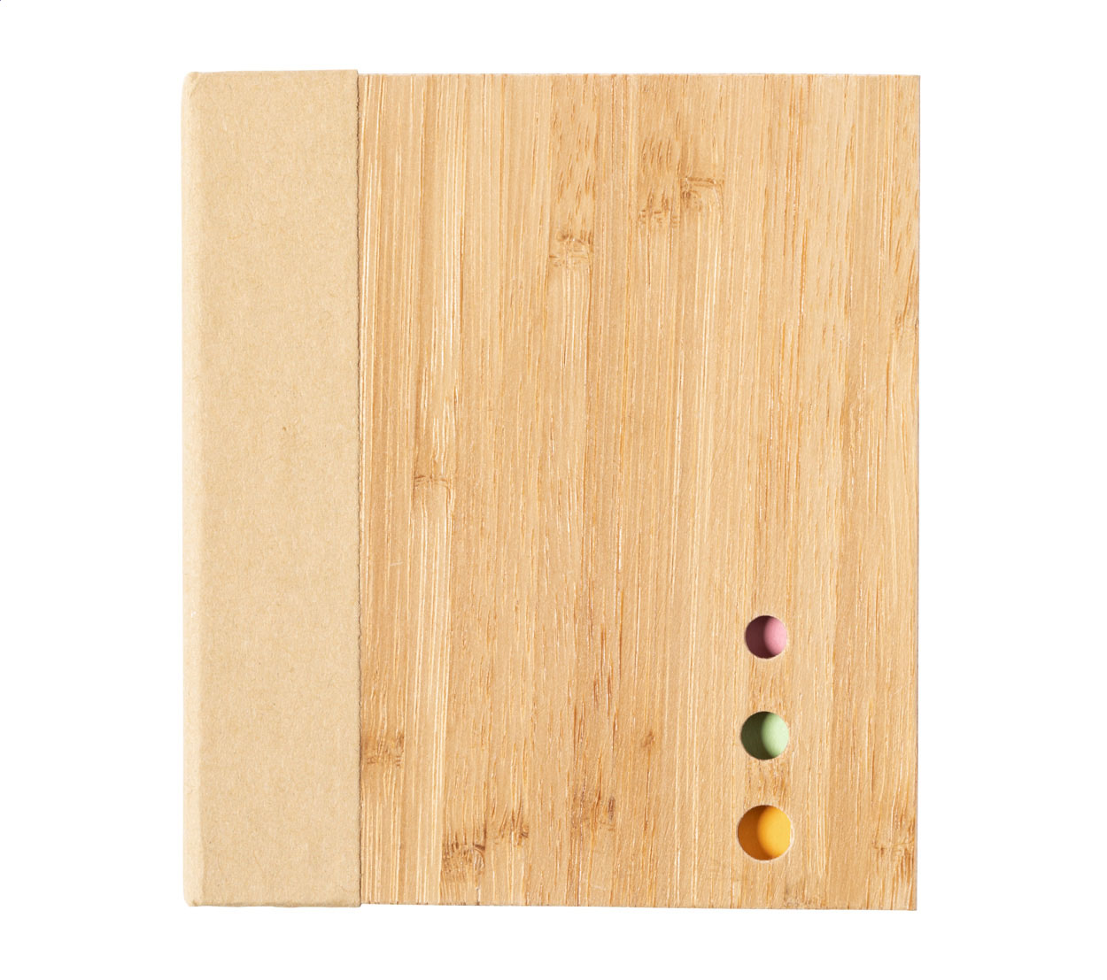 Mit Bambus überzogener Haftnotizblock aus recyceltem Papier mit 115 großen, 115 mittleren und 420 Mini-Haftnotizen (in 3 verschiedenen Farben).