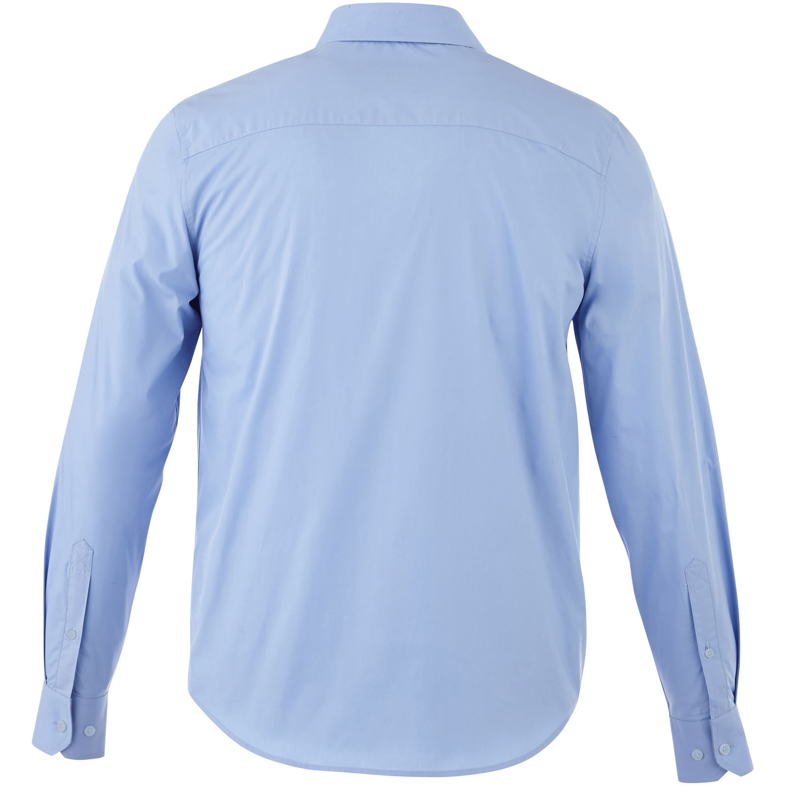 Offene, spitze Brusttasche linksPflegeleichtLange Ärmel mit KnopfmanschettenWRAP-ZertifizierungMaterial: 65% Polyester, 35% BaumwolleGrammatur: 105 g/m²Gewicht: 0.335Hergestellt nach: Faire Arbeitsbedingungen, Oeko-Tex 100Veredelung: Bestickung, Bedruckung, Beflockung