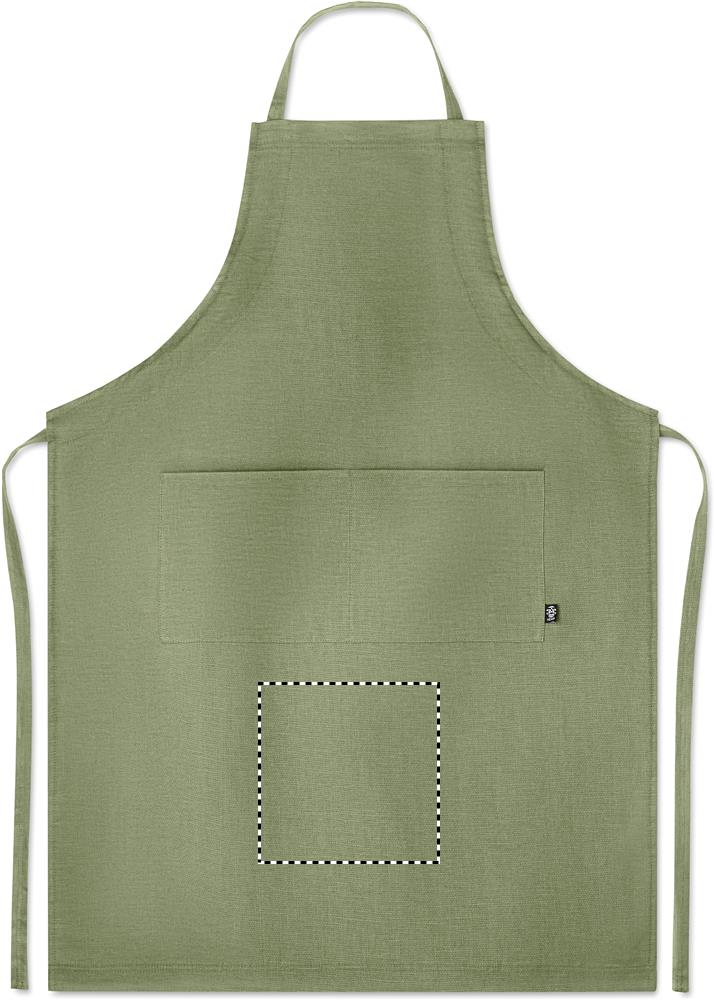 Küchenschürze aus recycelter Pre-Consumer-Baumwolle 180 g/m² (70% recycelte Baumwolle und 30% RPET-Polyester). Artikel kann nach dem Bedrucken schrumpfen.Material: RPET-Recycelte BaumwolleMaße: 65x90cmGewicht: 0.118 kgFarbe: BeigeVeredelung: Bestickung, Bedruckung, BeflockungHandling/Farbcodes: /13Druckposition: FRONTDruckmaße: 200 x 200 mmDrucktechniken: T1, TD1, E, TRDruckposition: FRONT MIDDLEDruckmaße: 280 x 400 mmDrucktechniken: S3, T1, TD1, TRDruckposition: FRONT LOWERDruckmaße: 280 x 400 mmDrucktechniken: T1, TD1, TRDruckposition: MIDDLE EMBROIDERYDruckmaße: 200 x 200 mmDrucktechniken: EDruckposition: LOWER EMBROIDERYDruckmaße: 200 x 200 mmDrucktechniken: E
