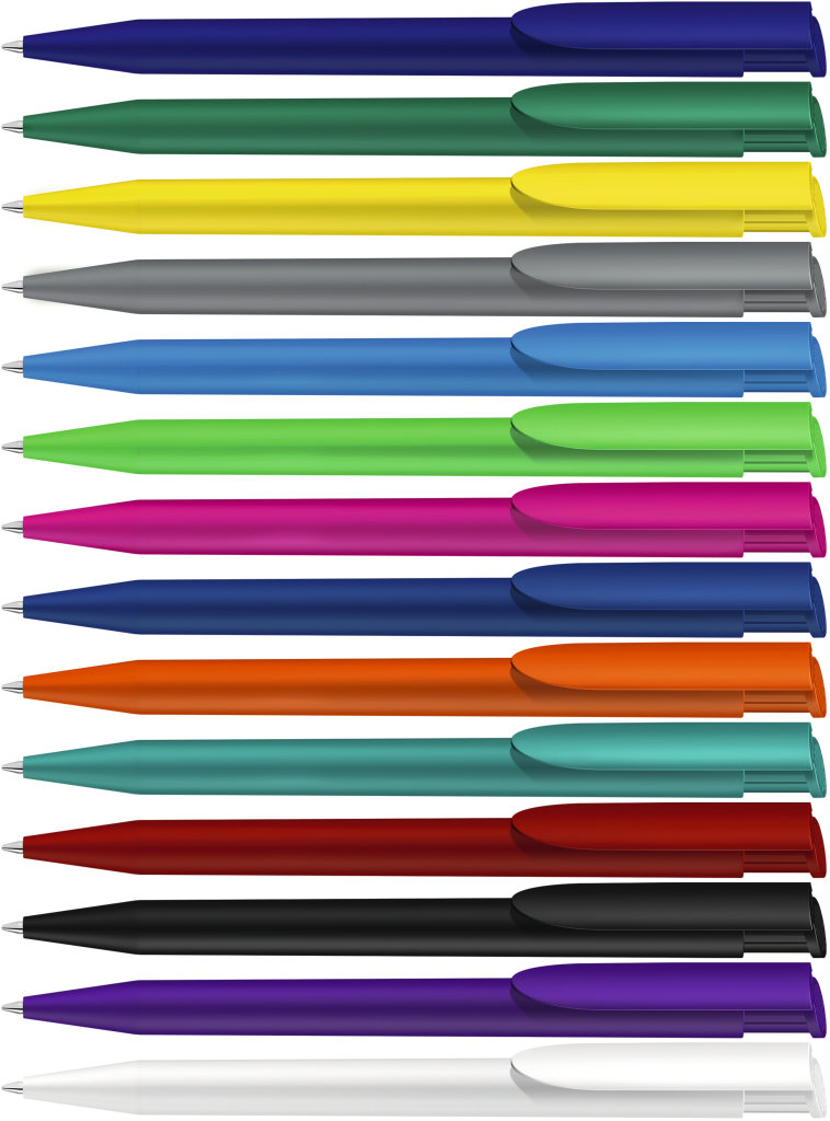 Farbiger Kugelschreiber aus Kunststoff, schwarzschreibend.Maße: ø10×138 mmSchreibgerät-Typ: KugelschreiberSchreibgerät-Mechanik: DruckmechanikSchreibfarbe: SchwarzMinentyp: Normale MineLinienstärke: 1 mmMaterial: KunststoffVeredelungsposition 1: Korpus - rechts vom ClipTechnologie: TampondruckMaximale Farben: 4Durchmesser: 0Druckcode: P0Technologie: TampondruckMaximale Farben: 1Durchmesser: 0Druckcode: P1Technologie: UV LED DruckDurchmesser: 0Druckcode: UVAVeredelungsposition 2: Korpus - links vom ClipTechnologie: TampondruckMaximale Farben: 4Durchmesser: 0Druckcode: P0Technologie: TampondruckMaximale Farben: 1Durchmesser: 0Druckcode: P1Technologie: UV LED DruckDurchmesser: 0Druckcode: UVAVeredelungsposition 3: KlipTechnologie: TampondruckMaximale Farben: 4Durchmesser: 0Druckcode: P0Veredelungsposition 4: Korpus - in Verlängerung vom ClipTechnologie: TampondruckMaximale Farben: 4Durchmesser: 0Druckcode: P0