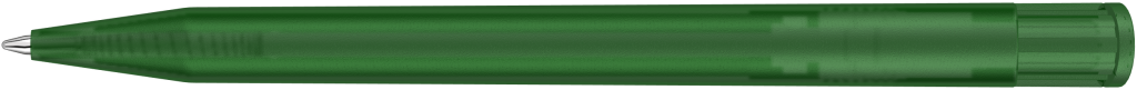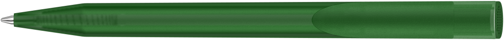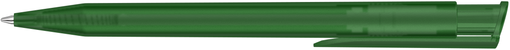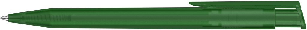 Druckkugelschreiber mit transparent gefrostetem Gehäuse und Clipdrücker.
