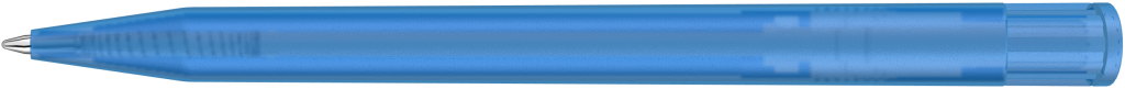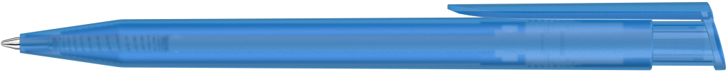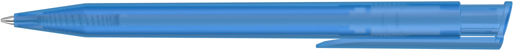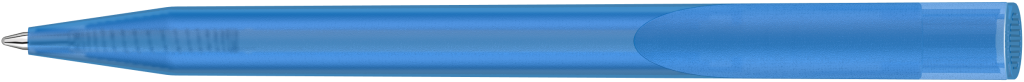 Druckkugelschreiber mit transparent gefrostetem Gehäuse und Clipdrücker.