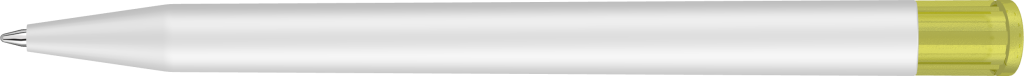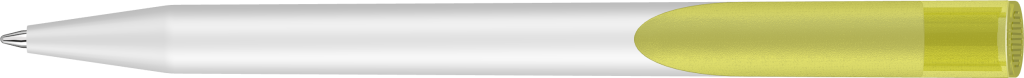 Druckkugelschreiber mit gedeckt mattem Gehäuse in weiß und farbig transparent gefrostetem Clipdrücker.