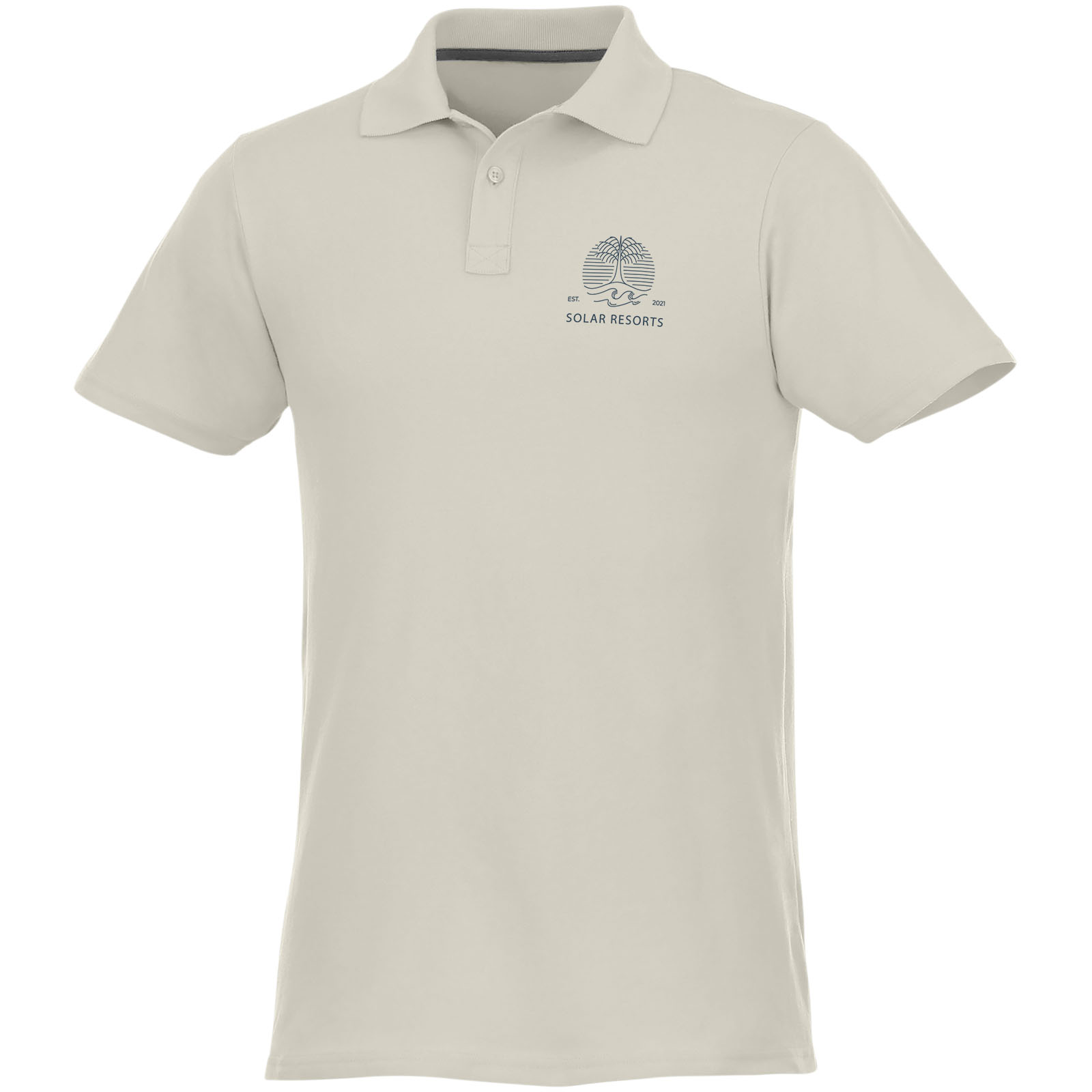 Das Helios Kurzarm-Poloshirt für Herren kombiniert raffinierten Stil mit einzigartigen, individuellen Branding-Optionen. Es ist aus 180 g/m² Baumwollpiqué gefertigt und bietet leichten Komfort und Strapazierfähigkeit. Die Innenausstattung, einschließlich des abreißbaren Hauptetiketts, ermöglicht die Platzierung eines individuellen Logos und macht es zur perfekten Wahl für jede Veranstaltung. Mit seinem klassischen Polokragen und den kurzen Ärmeln lässt es sich mühelos von legeren zu formellen Anlässen kombinieren. Mehrere Farben verfügbar, passend zu jeder Marke.