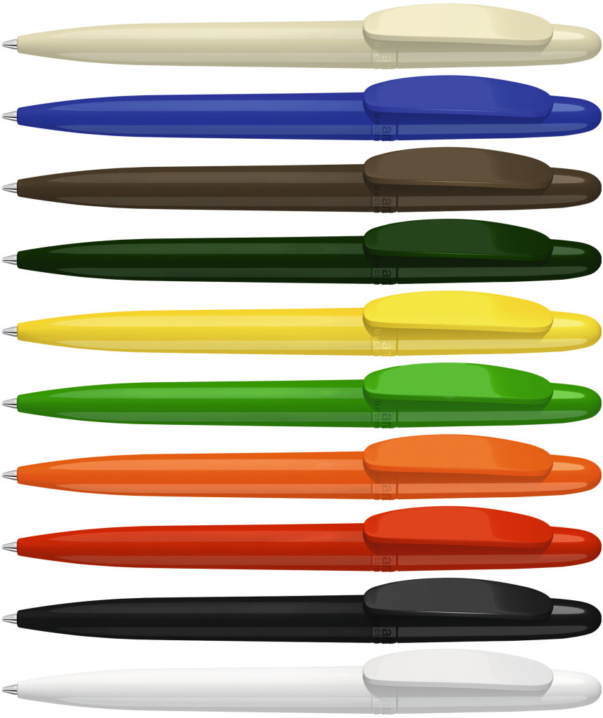 Farbiger Kugelschreiber aus Kunststoff, schwarzschreibend.Maße: ø10×138 mmSchreibgerät-Typ: KugelschreiberSchreibgerät-Mechanik: DruckmechanikSchreibfarbe: SchwarzMinentyp: Normale MineLinienstärke: 1 mmMaterial: KunststoffVeredelungsposition 1: Korpus - rechts vom ClipTechnologie: TampondruckMaximale Farben: 4Durchmesser: 0Druckcode: P0Technologie: TampondruckMaximale Farben: 1Durchmesser: 0Druckcode: P1Technologie: UV LED DruckDurchmesser: 0Druckcode: UVAVeredelungsposition 2: Korpus - links vom ClipTechnologie: TampondruckMaximale Farben: 4Durchmesser: 0Druckcode: P0Technologie: TampondruckMaximale Farben: 1Durchmesser: 0Druckcode: P1Technologie: UV LED DruckDurchmesser: 0Druckcode: UVAVeredelungsposition 3: KlipTechnologie: TampondruckMaximale Farben: 4Durchmesser: 0Druckcode: P0Veredelungsposition 4: Korpus - in Verlängerung vom ClipTechnologie: TampondruckMaximale Farben: 4Durchmesser: 0Druckcode: P0
