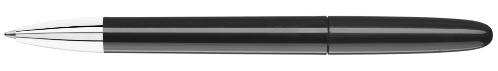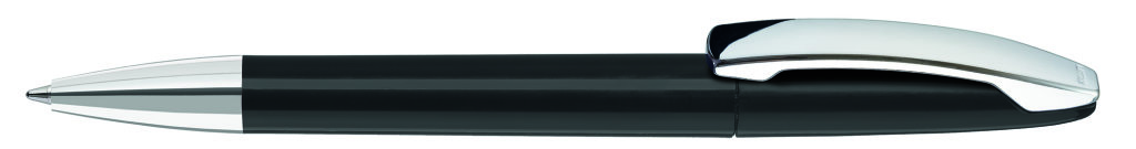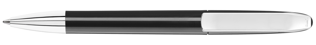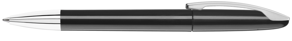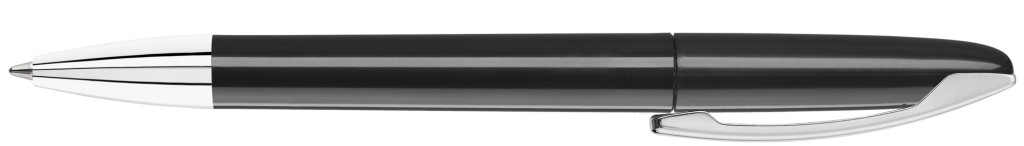 Drehkugelschreiber mit gedeckt glänzendem Gehäuse, Metallclip und Spitze glanzverchromt.