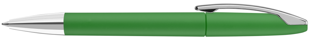 Drehkugelschreiber mit Softtouch-Gehäuse, Metallclip und Spitze glanzverchromt.