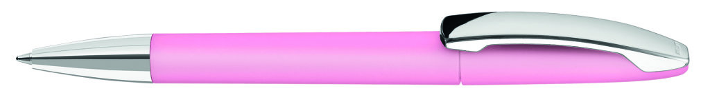 Drehkugelschreiber mit Softtouch-Gehäuse, Metallclip und Spitze glanzverchromt.
