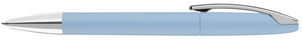 Drehkugelschreiber mit Softtouch-Gehäuse, Metallclip und Spitze glanzverchromt.
