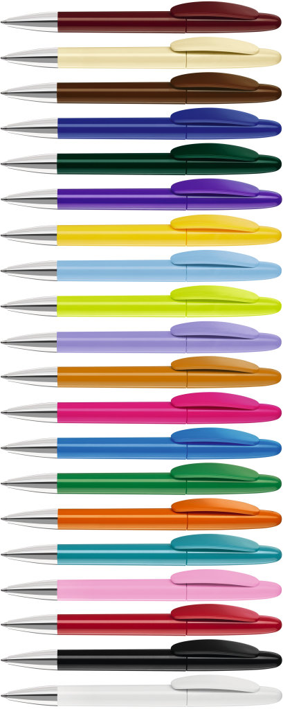 Farbiger Kugelschreiber aus Kunststoff, schwarzschreibend.Maße: ø10×138 mmSchreibgerät-Typ: KugelschreiberSchreibgerät-Mechanik: DruckmechanikSchreibfarbe: SchwarzMinentyp: Normale MineLinienstärke: 1 mmMaterial: KunststoffVeredelungsposition 1: Korpus - rechts vom ClipTechnologie: TampondruckMaximale Farben: 4Durchmesser: 0Druckcode: P0Technologie: TampondruckMaximale Farben: 1Durchmesser: 0Druckcode: P1Technologie: UV LED DruckDurchmesser: 0Druckcode: UVAVeredelungsposition 2: Korpus - links vom ClipTechnologie: TampondruckMaximale Farben: 4Durchmesser: 0Druckcode: P0Technologie: TampondruckMaximale Farben: 1Durchmesser: 0Druckcode: P1Technologie: UV LED DruckDurchmesser: 0Druckcode: UVAVeredelungsposition 3: KlipTechnologie: TampondruckMaximale Farben: 4Durchmesser: 0Druckcode: P0Veredelungsposition 4: Korpus - in Verlängerung vom ClipTechnologie: TampondruckMaximale Farben: 4Durchmesser: 0Druckcode: P0