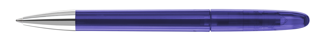Drehkugelschreiber mit transparent glänzendem Gehäuse und Spitze glanzverchromt.