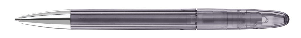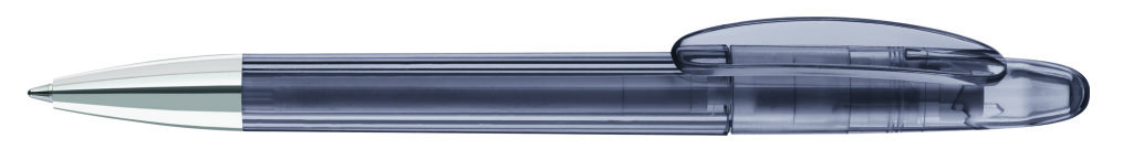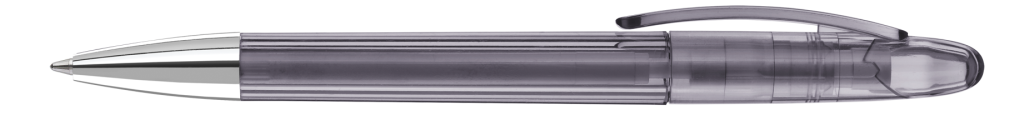 Drehkugelschreiber mit transparent glänzendem Gehäuse und Spitze glanzverchromt.