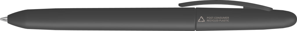 Drehkugelschreiber mit gedeckt mattem Gehäuse aus 100% recyceltem Post-Consumer-Kunststoff. Das Modell ist mit dem Recyclingzeichen gekennzeichnet. Aufgrund der Besonderheit des Materials (Post-Consumer Recycled Plastic) sind produktionstechnische Farbschwankungen gegeben.Druckbereich: Auf dem Clip 35mm x 6mm Tampondruck (T), in Clipverlängerung 40mm x 20mm Siebdruck (S), gegenüber vom Clip 40mm x 20mm Siebdruck (S), seitlich vom Clip 40mm x 20mm Siebdruck (S)