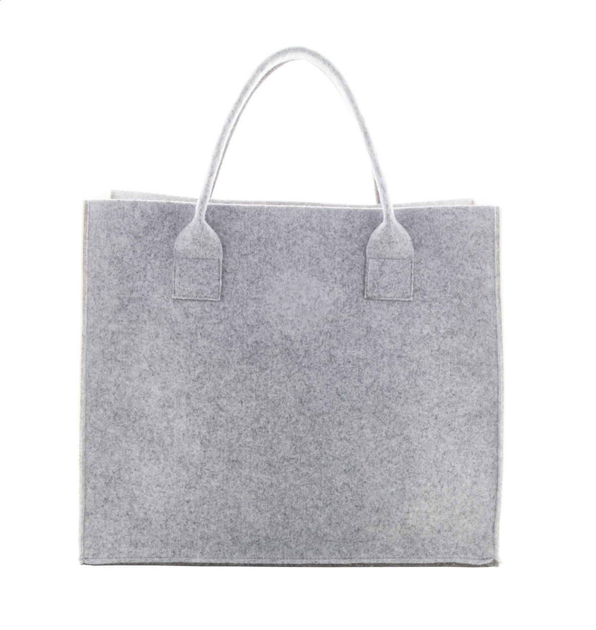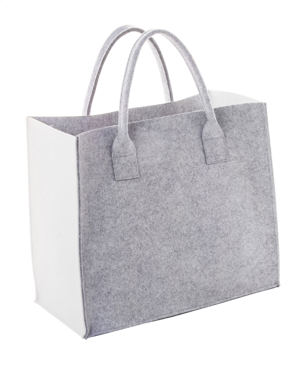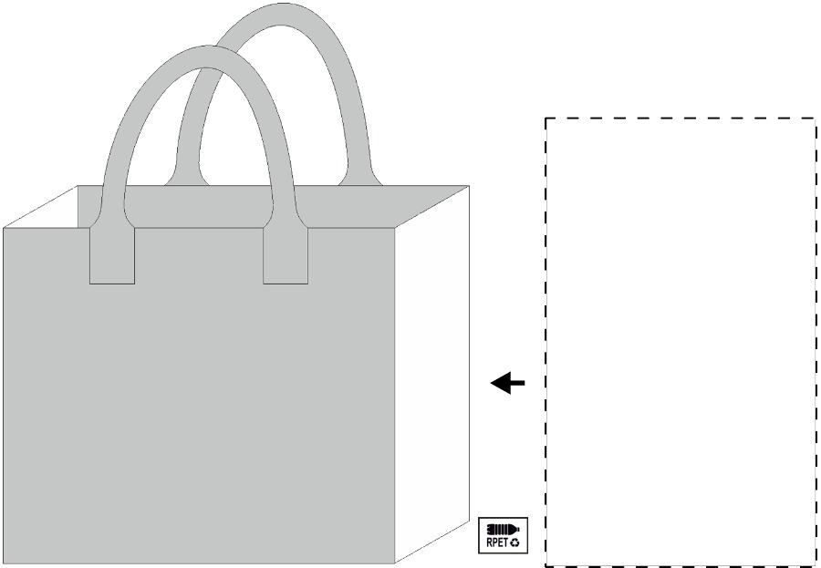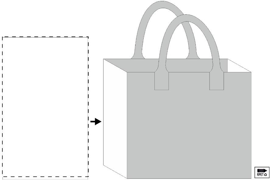 Individuelle Einkaufstasche aus RPET Filz mit vollfarbig bedruckten Seitenfalten, kurzen Henkeln und RPET-Label. Der Preis ist inkl. dem Sublimationsdruck. Mindestmenge: 25 Stk.