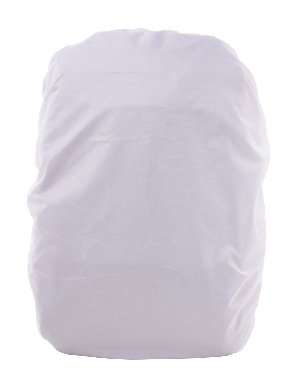 Individuelle Rucksackhülle aus 190T RPET Polyester mit Elastikband und RPET-Label, geeignet für Rucksäcke von 10-20 l. Der Preis ist inkl. volflächigem Sublimationsdruck. Mindestmenge: 25 Stk.
