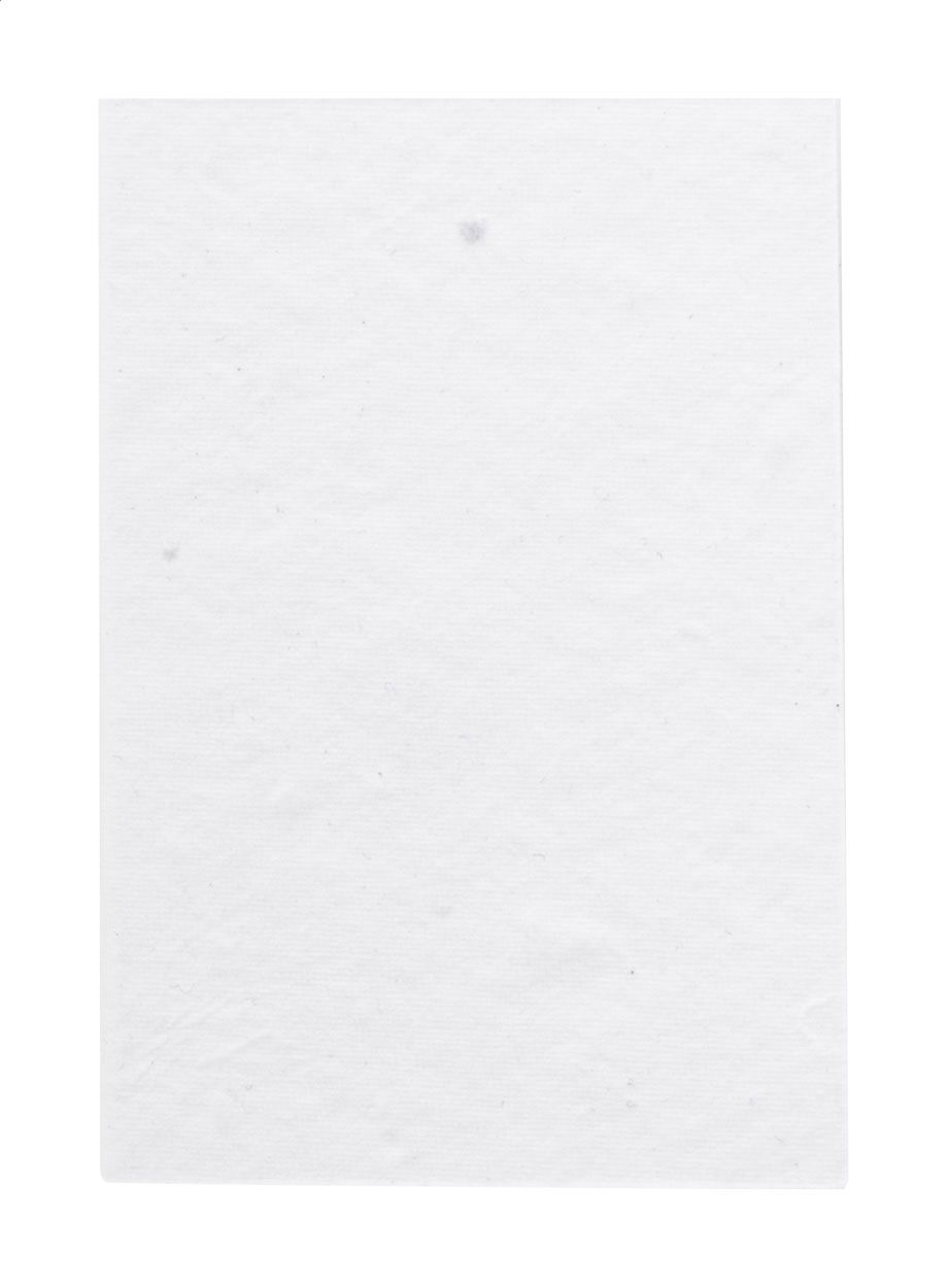 Individueller Haftnotizblock mit Umschlag aus Samenpapier (mit sortierten Wildblumensamen). Beinhaltet Haftnotizen aus Recyclingpapier in 2 Größen (50 Blatt in 100x75mm, 25 Blatt in 50x75mm) und 100 Filmmarker in 5 unterschiedlichen Farben (12x44mm). Der Preis beinhaltet einen vollfarbigen Druck auf der Cover-Außenseite. Mindestmenge: 100 Stk.