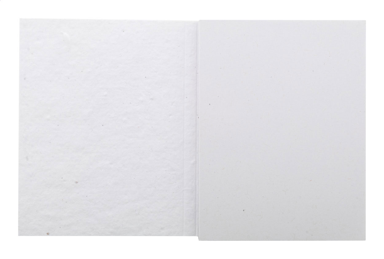 Individueller Haftnotizblock mit Umschlag aus Samenpapier (mit sortierten Wildblumensamen). Beinhaltet 50 Blatt Haftnotizen aus Recyclingpapier (100x75mm). Der Preis beinhaltet einen vollfarbigen Druck auf der Cover-Außenseite. Mindestmenge: 100 Stk.