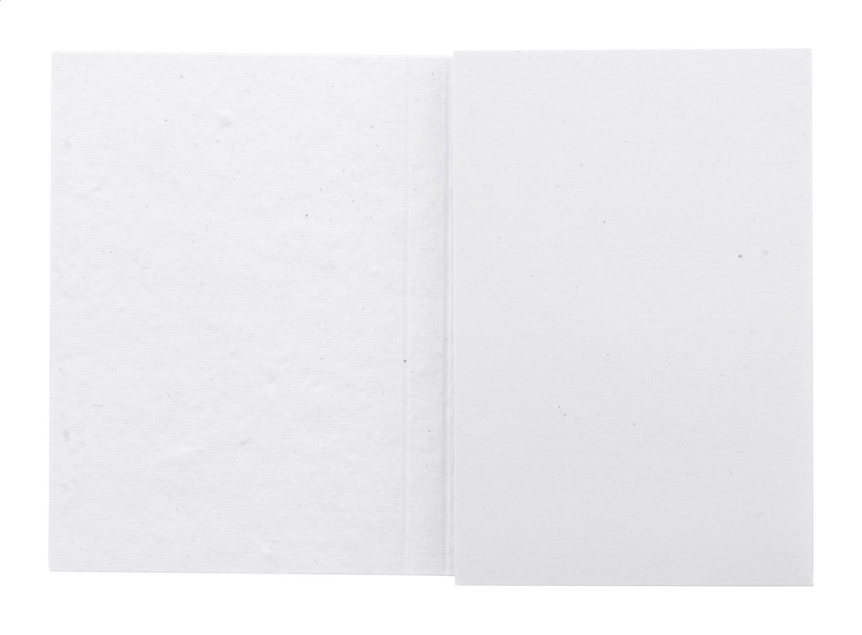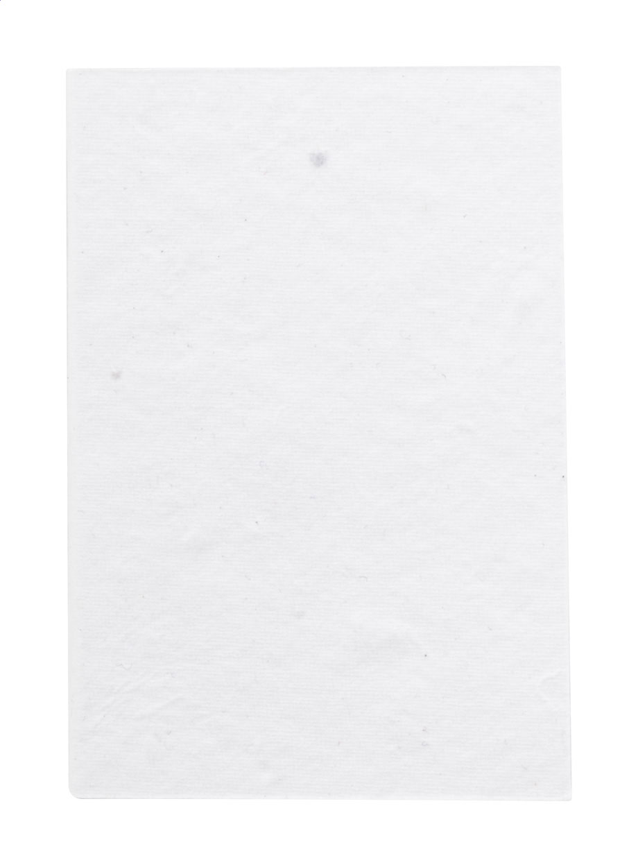 Individueller Haftnotizblock mit Umschlag aus Samenpapier (mit sortierten Wildblumensamen). Beinhaltet 50 Blatt Haftnotizen aus Recyclingpapier (50x75mm). Der Preis beinhaltet einen vollfarbigen Druck auf der Cover-Außenseite. Mindestmenge: 100 Stk.