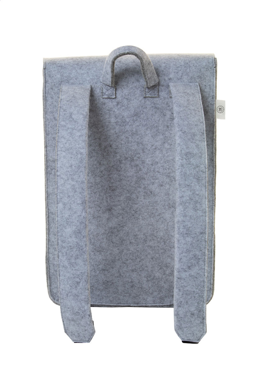 Individueller Rucksack aus RPET-Filz mit vollfarbig bedruckter Vorderseite, verstellbaren Schultergurten und Druckknopfverschluss. Mit markantem RPET-Label. Der Preis beinhaltet den Sublimationsdruck. Mindestbestellmenge: 25 Stück.