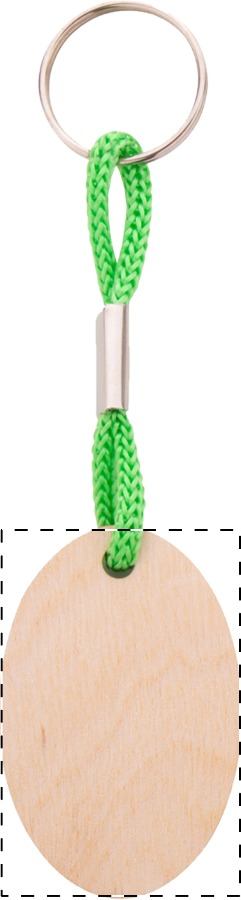 Ovaler Schlüsselanhänger aus Birkensperrholz mit farbigem Band aus Polyester und Vollfarbdruck. Der Preis ist inkl. UV Druck auf einer Seite. Mindestmenge: 200 Stk.