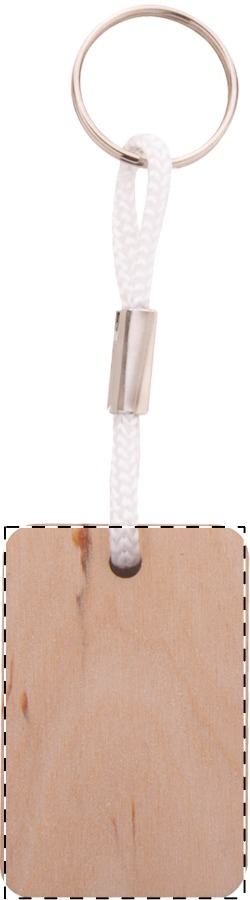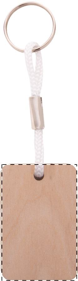 Rechteckiger Schlüsselanhänger aus Birkensperrholz mit farbigem Band aus Polyester und Vollfarbdruck. Der Preis ist inkl. UV Druck auf einer Seite. Mindestmenge: 200 Stk.
