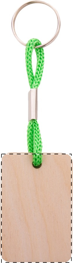 Rechteckiger Schlüsselanhänger aus Birkensperrholz mit farbigem Band aus Polyester und Vollfarbdruck. Der Preis ist inkl. UV Druck auf einer Seite. Mindestmenge: 200 Stk.