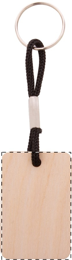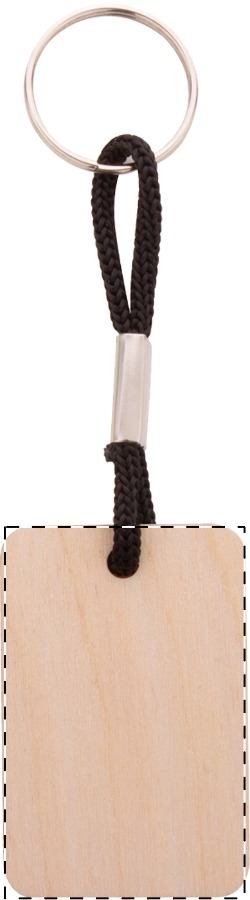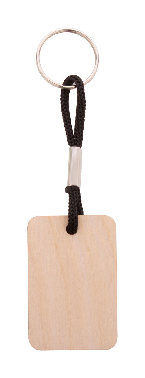Rechteckiger Schlüsselanhänger aus Birkensperrholz mit farbigem Band aus Polyester und Vollfarbdruck. Der Preis ist inkl. UV Druck auf einer Seite. Mindestmenge: 200 Stk.