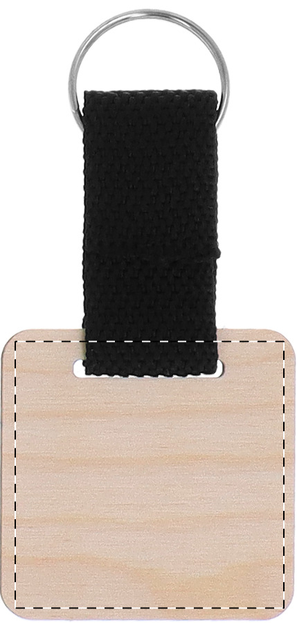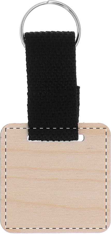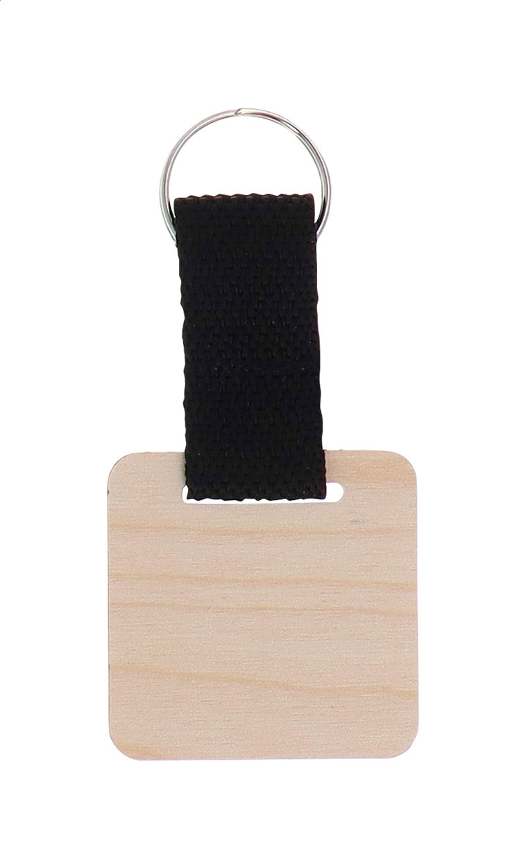 Schlüsselanhänger aus Birkensperrholz mit Polyesterband. Der Preis beinhaltet UV-LED-Druck auf einer Seite. Mindestmenge: 200 Stk.