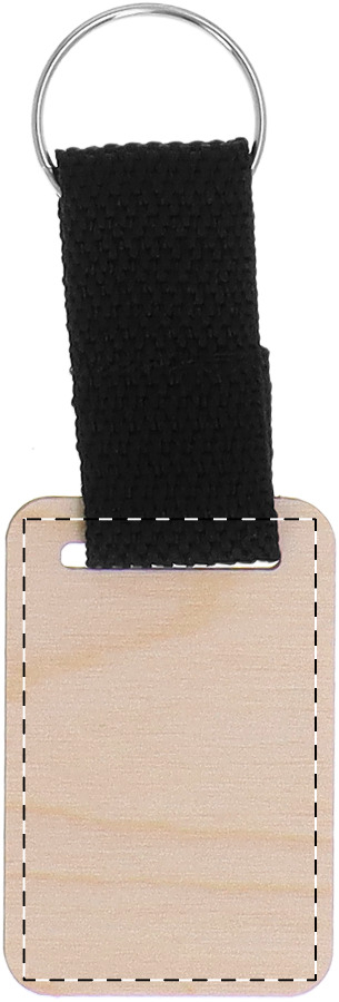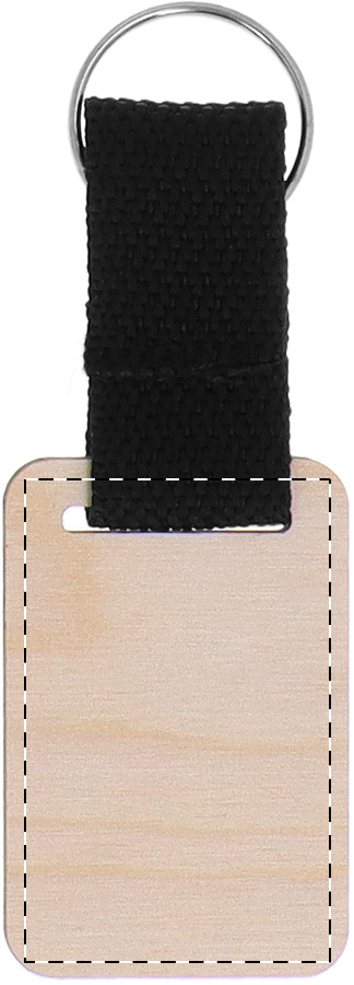 Schlüsselanhänger aus Birkensperrholz mit Polyesterband. Der Preis beinhaltet UV-LED-Druck auf einer Seite. Mindestmenge: 200 Stk.
