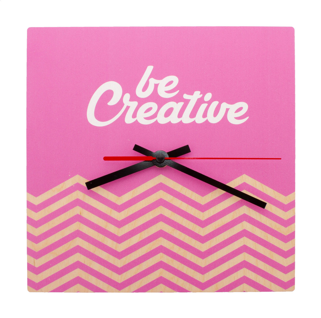 Individuelle, quadratische Wanduhr aus Birkensperrholz mit individueller Bedruckung. Exkl. Batterie (1x AA). Mindestmenge: 50 Stk.