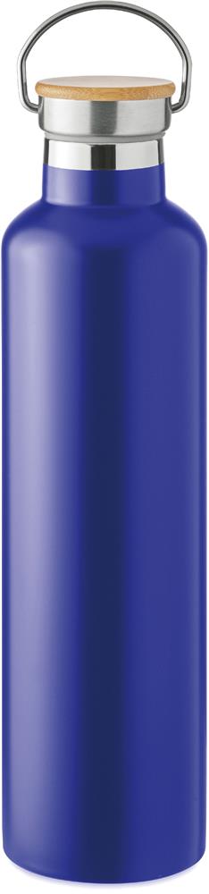 Doppelwandige Isolierflasche aus Edelstahl mit Bambusdeckel und Henkel. Füllmenge: 1000 ml. Bambus ist ein natürliches Produkt, es kann daher zu leichten Abweichungen in Farbe, Dekor und Maßen kommen.