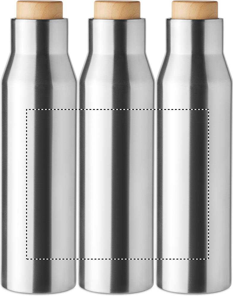 Doppelwandige Isolierflasche aus Edelstahl. Verschluss aus Bambus- Imitat. Füllmenge: 500 ml. Auslaufsicher.Material: Edelstahl Maße: Ø6.5x26cmGewicht: 0.275 kgVeredelung: Bestickung, Bedruckung, BeflockungHandling/Farbcodes: B/02, 06, 85, 03, 16Druckposition: 360 LASERDruckmaße: 216 x 140 mmDrucktechniken: RLDruckposition: 360 DIGITALDruckmaße: 216 x 175 mmDrucktechniken: RD3Druckposition: ROUNDSCREENDruckmaße: 170 x 140 mmDrucktechniken: RS6Druckposition: BOTTLE FRONTDruckmaße: 30 x 80 mmDrucktechniken: L3, P5Druckposition: SUBLIMATIONDruckmaße: 200 x 160 mmDrucktechniken: TS3