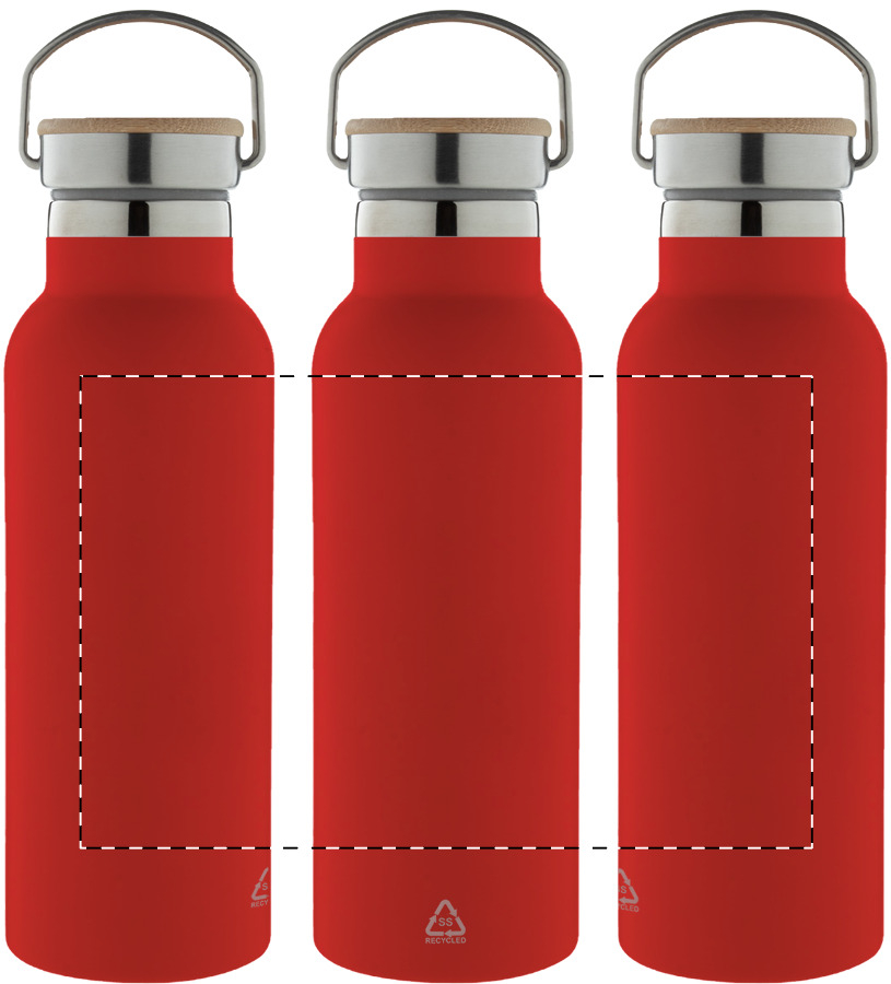 Doppelwandige Vakuumflasche aus recyceltem Edelstahl mit Bambus-Tragedeckel. Füllmenge: 500 ml.Maße: ø70×220 mmFüllmenge: 500 mlSpülmaschinengeeignet: NeinMikrowellenfest: NeinWandtyp: DoppelwandigIsolationstyp: Vakuum-IsolationKalthaltezeit: 12 óraWarmhaltezeit: 8 óraauslaufsicher / schwappsicher: auslaufsicherMaterial: Recycelter Edelstahl, BambusVeredelungsposition 1: VorderseiteTechnologie: GravurDurchmesser: 0Druckcode: E3Technologie: TampondruckMaximale Farben: 2Durchmesser: 0Druckcode: P3Veredelungsposition 2: KappeTechnologie: GravurDurchmesser: 45Druckcode: E3Veredelungsposition 3: RundumTechnologie: Rundum-GravurDurchmesser: 0Druckcode: ER1Technologie: Rundum-GravurDurchmesser: 0Druckcode: ER2Technologie: Rundum-SiebdruckMaximale Farben: 1Durchmesser: 0Druckcode: RS2Technologie: Rundum-UV LED-DruckDurchmesser: 0Druckcode: RUV