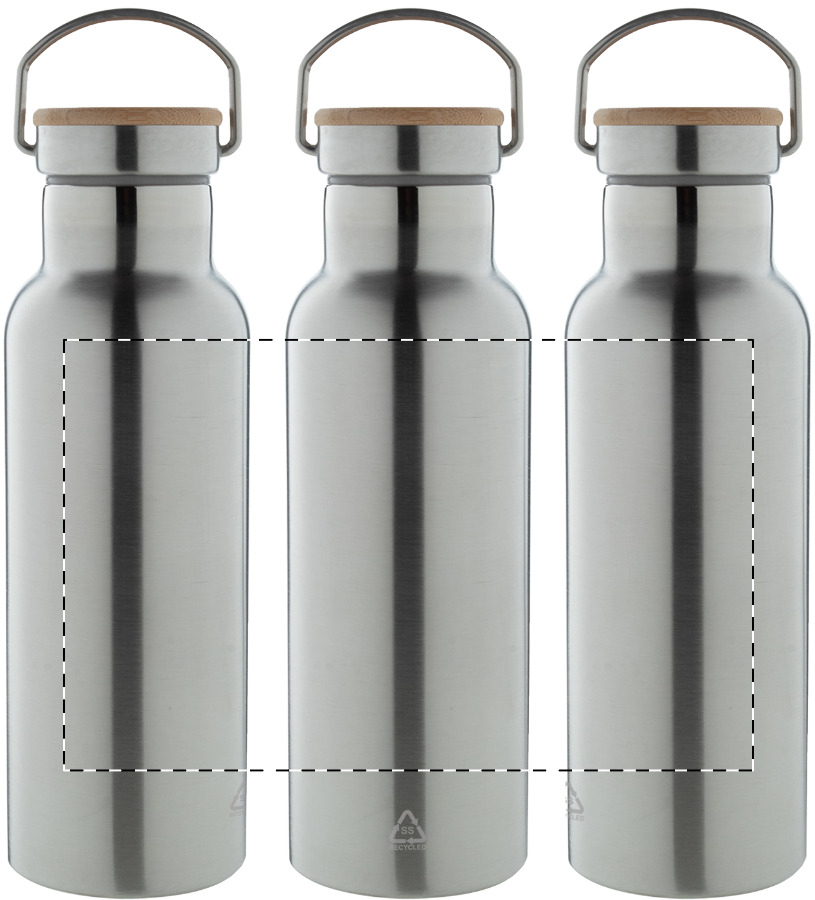 Doppelwandige Vakuumflasche aus recyceltem Edelstahl mit Bambus-Tragedeckel. Füllmenge: 500 ml.Maße: ø70×220 mmFüllmenge: 500 mlSpülmaschinengeeignet: NeinMikrowellenfest: NeinWandtyp: DoppelwandigIsolationstyp: KupferisoliertKalthaltezeit: 24 óraWarmhaltezeit: 12 óraauslaufsicher / schwappsicher: auslaufsicherMaterial: Recycelter Edelstahl, BambusVeredelungsposition 1: VorderseiteTechnologie: GravurDurchmesser: 0Druckcode: E3Technologie: Gravur - EinzelnamenDurchmesser: 0Druckcode: NE3Technologie: TampondruckMaximale Farben: 2Durchmesser: 0Druckcode: P3Veredelungsposition 2: KappeTechnologie: GravurDurchmesser: 45Druckcode: E3Technologie: Gravur - EinzelnamenDurchmesser: 45Druckcode: NE3Veredelungsposition 3: RundumTechnologie: Rundum-GravurDurchmesser: 0Druckcode: ER1Technologie: Rundum-GravurDurchmesser: 0Druckcode: ER2Technologie: Rundumgravur - EinzelnamenDurchmesser: 0Druckcode: NER1Technologie: Rundumgravur - EinzelnamenDurchmesser: 0Druckcode: NER2Technologie: Rundum-UV-LED-Druck - EinzelnamenDurchmesser: 0Druckcode: NRUVTechnologie: Rundum-SiebdruckMaximale Farben: 1Durchmesser: 0Druckcode: RS2Technologie: Rundum-UV LED-DruckDurchmesser: 0Druckcode: RUVVeredelungsposition 4: BambusteilTechnologie: DomingDurchmesser: 49Druckcode: DO4